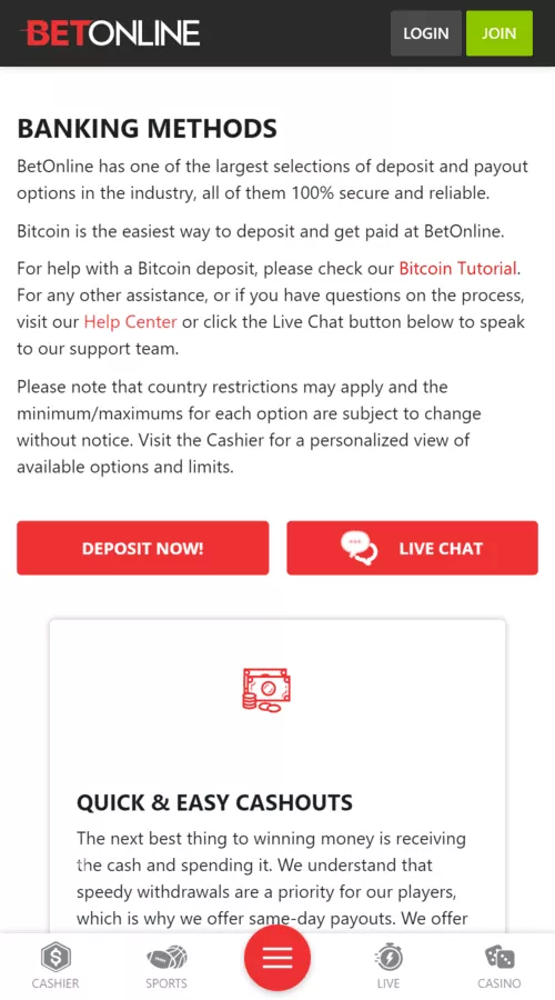 When it comes to promotions and bonus offers, both the mobile site and mobile application have the same features. Bettors will not find it hard to access all rewards from the BetOnline Casino Mobile App. It does not matter your perspective; this is undoubtedly one of the best sportsbooks out there. The only thing they need to thoroughly improve on is the website design, which comes off as a little bit outdated. However, once you take a closer look, you will soon realize how sleek it is in features and how easy it is to navigate through all the categories available. The designers at BetOnline seem to be more inclined towards the mobile-first approach. This fact almost dictates that the site is curated with the mobile players. These users are quickly growing in number, and with that comes new needs and demands to be met as satisfactorily as possible.