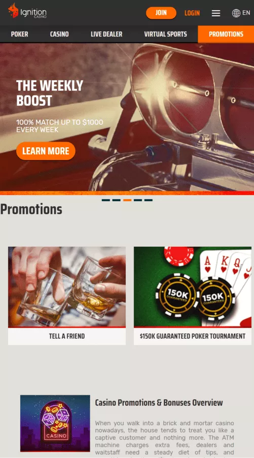 Regardless of your player expertise, you must always select the best gambling site that caters to your needs. We are happy to inform you that Ignition Mobile Casino has several unique features guaranteed to lure you in and hook you. Below are comprehensive details of the unique offerings available on this platform.