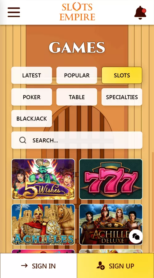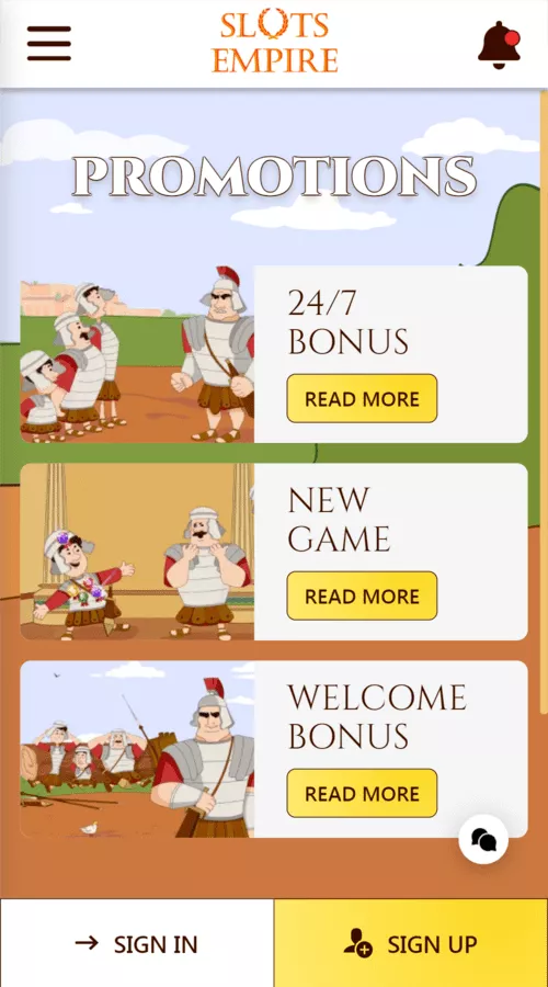 Slots Empire IOS app is available for download. iPhone users can simply visit the mobile site from the platform’s official website. The app has most of the important casino features including a wide game range, an array of payment options, VIP Program, among others.