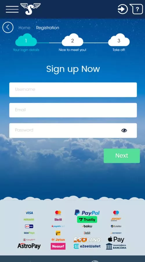 In case you do not have an account in the Sloty app casino, you will have to register here first. If you already have an account, you can simply log in directly using your username and password.