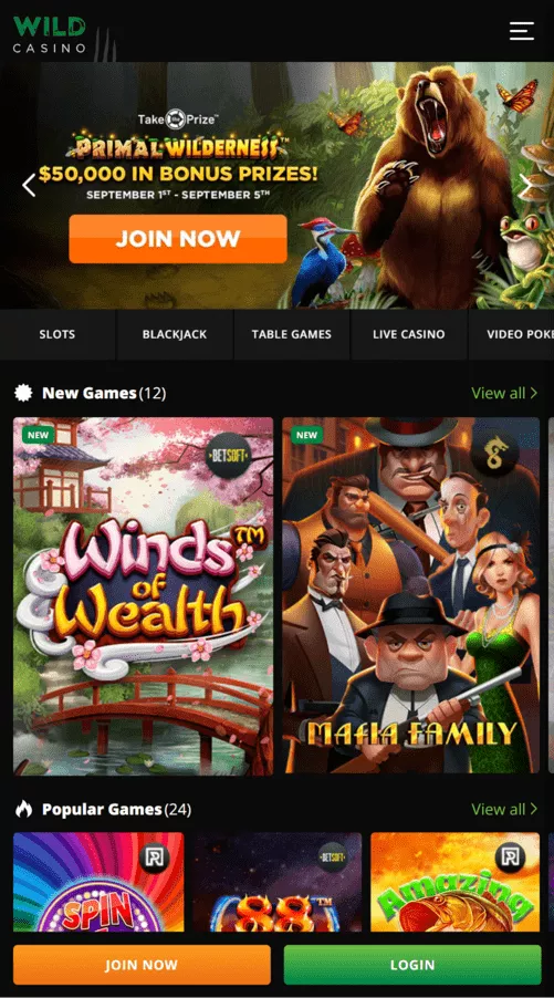 Get in on the action of mobile gambling by joining Wild Casino App. It is compatible with all operating systems and does not require players to download additional software. As a result, you can simply access it by visiting the Wild Casino Official site on your mobile browser to be automatically rerouted to the mobile app. Trust us! You will not regret it!