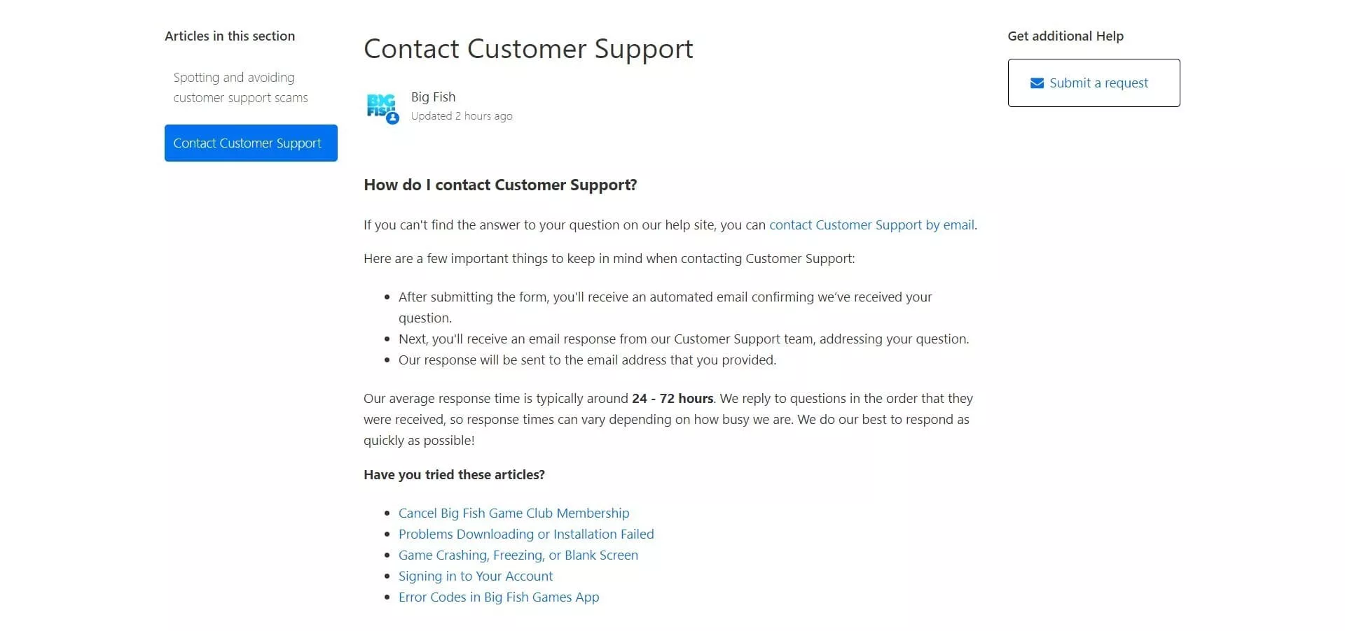 Although it is fairly simple to get started on Big Fish, players can also access customer support in case they have any queries or issues about the platform and its offerings. Its responsive and professional support team is ready to address any of your concerns about playing on the platform. You can reach them through the live chat feature or the phone number provided. There is also a comprehensive FAQ section with some of the most asked questions from players.