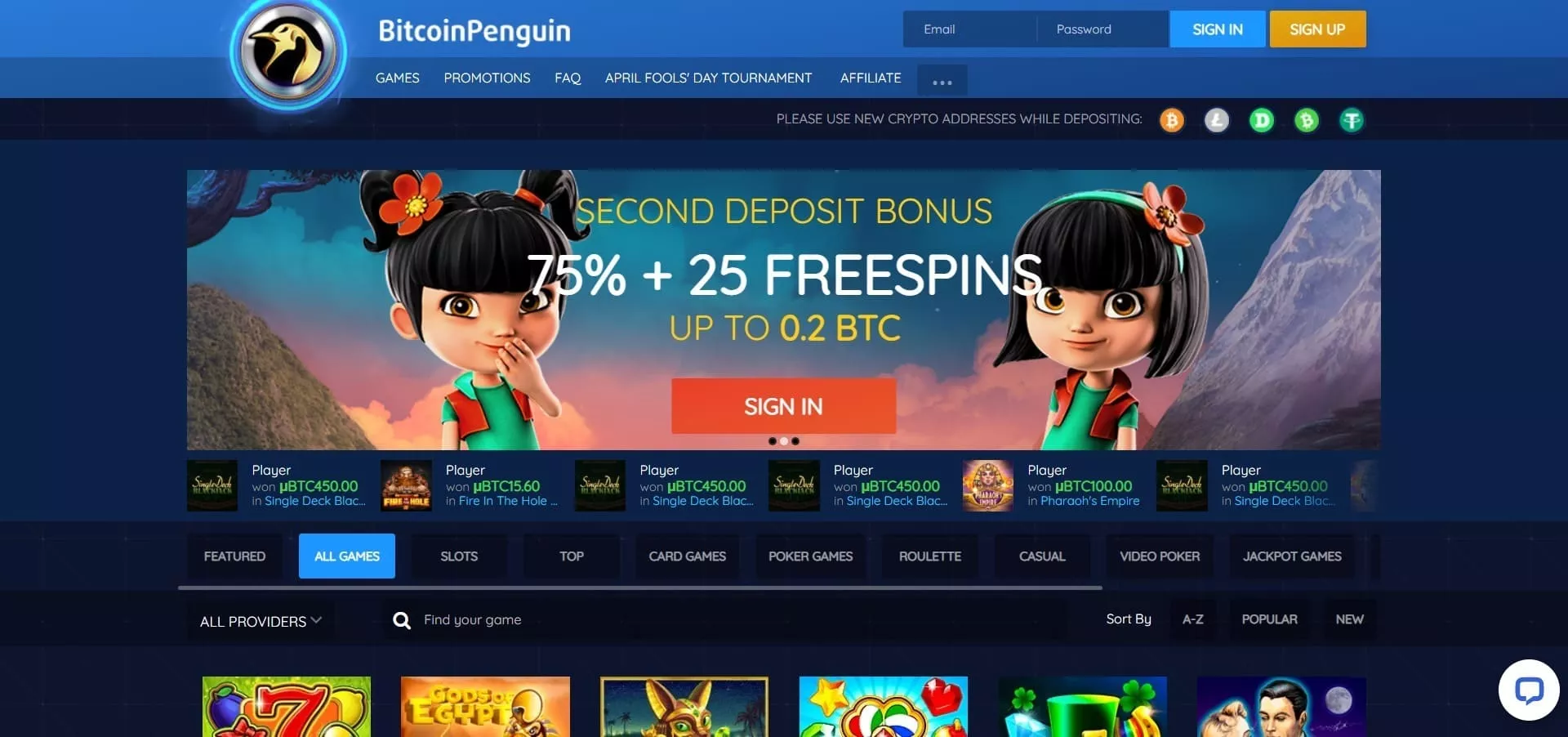 Online casino BitcoinPenguin also features a cutting-edge gaming library that boasts of more than 1000 amazing titles. Although slots make up the majority of the available games, this operator offers many other options. They also have a well-designed live casino and can cater to all types of players.