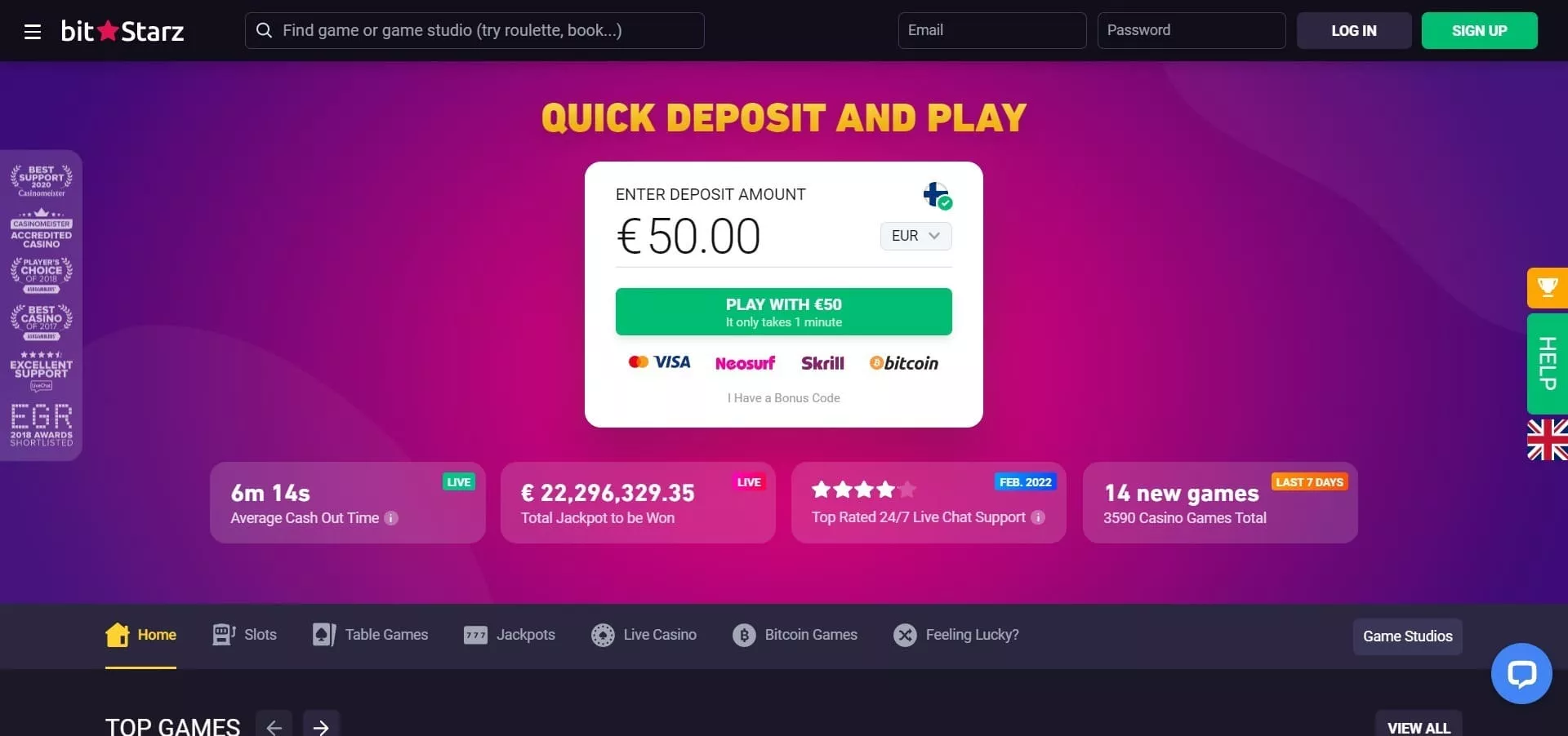 BitStarz gamers can cash out in less than 10 minutes on average. While certain withdrawals will take longer than this, depending on your withdrawal method, most players will instantly receive their earnings!
