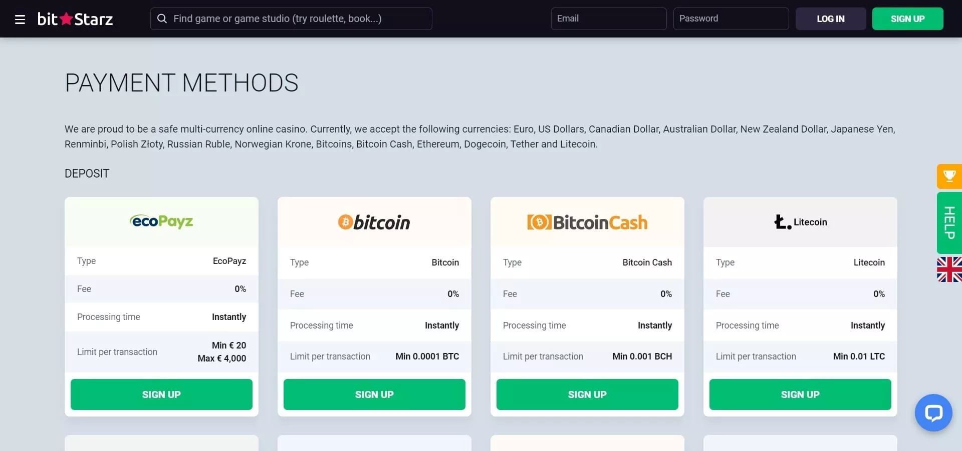 Punters can also use fiat currency to make deposits. Methods like credit card payments and E-wallet have a minimum of €20 and €4,000 maximum deposits. Bitstarz casino payout for fiat currency begins at a minimum of €40 with a maximum limit of €4000.