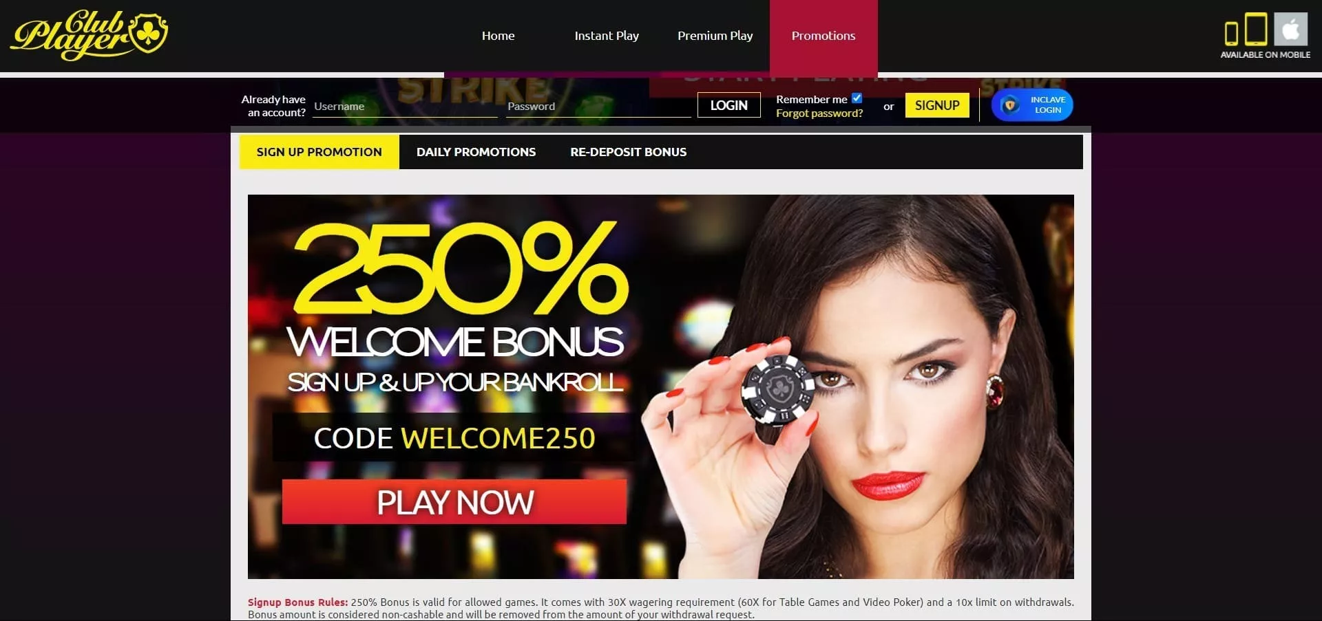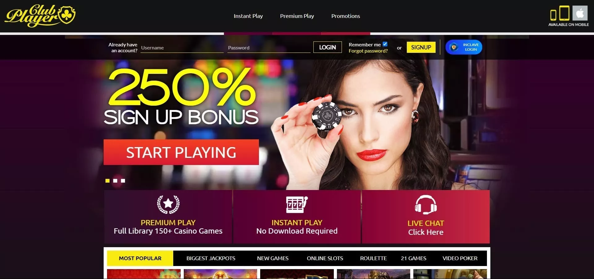 Club Player casino USA is available on a wide range of mobile devices. Android and Apple users can download Club Player casino software from Apple Store and Play Store.