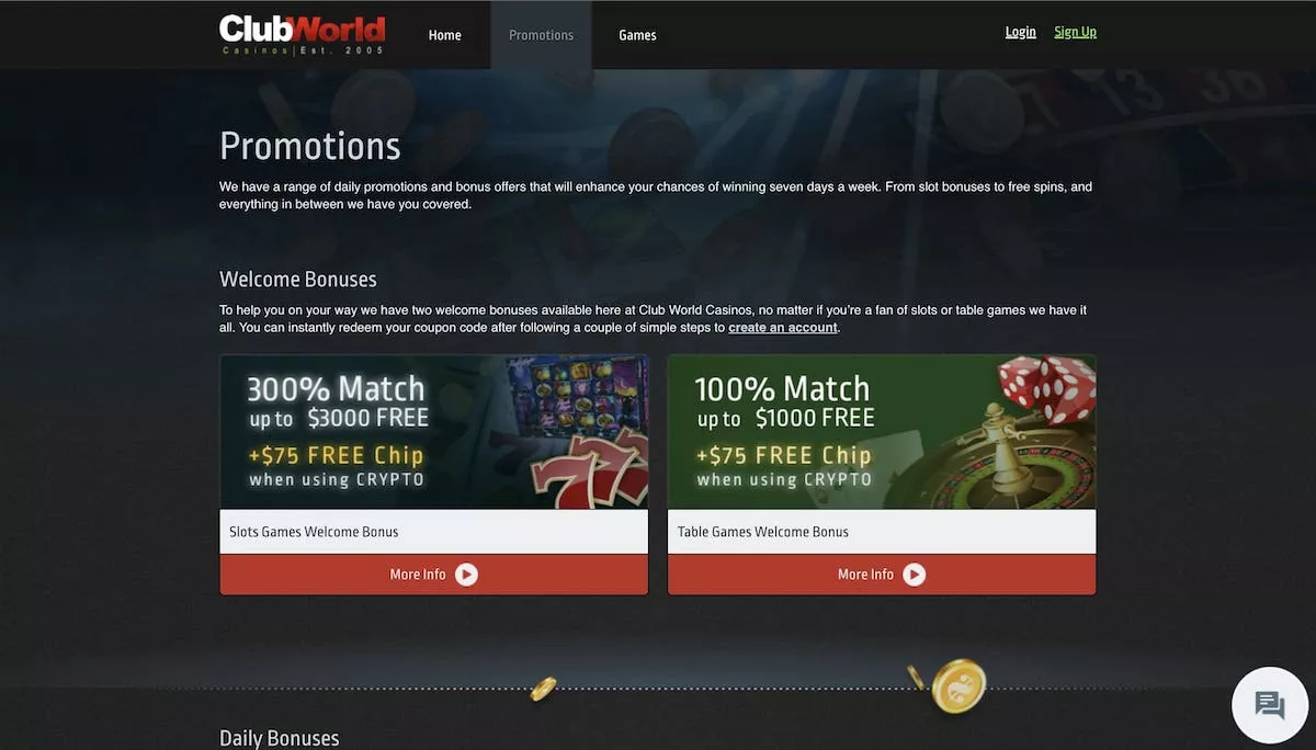 With their aggressive 100% match Club world Casino bonus offer, which can be gotten through the Club World casino promo code players may sign up right now and take advantage of an outstanding and attainable welcome offer of up to $1500, a Club world casino No deposit bonus and Club World casino free spins. They also have a hefty bonus program that rewards devoted players such as the Club world casino free chips, Club world casino promo codes so the perks don’t end there. Access to ClubWorld casino Bonus codes is a factor that can determine how much Bonus offer a player can enjoy and take advantage of.
