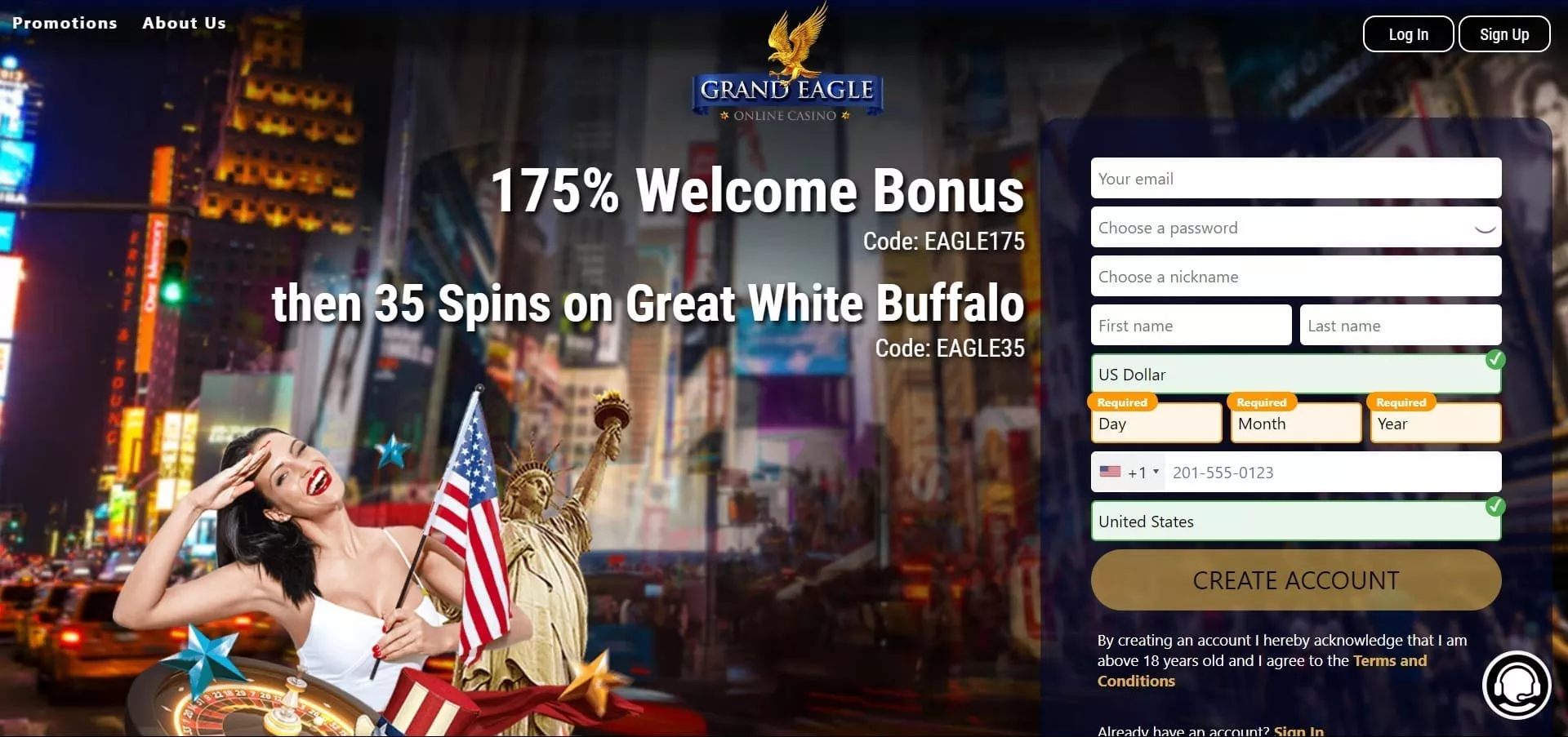 Simple registration and Grand Eagle Casino login