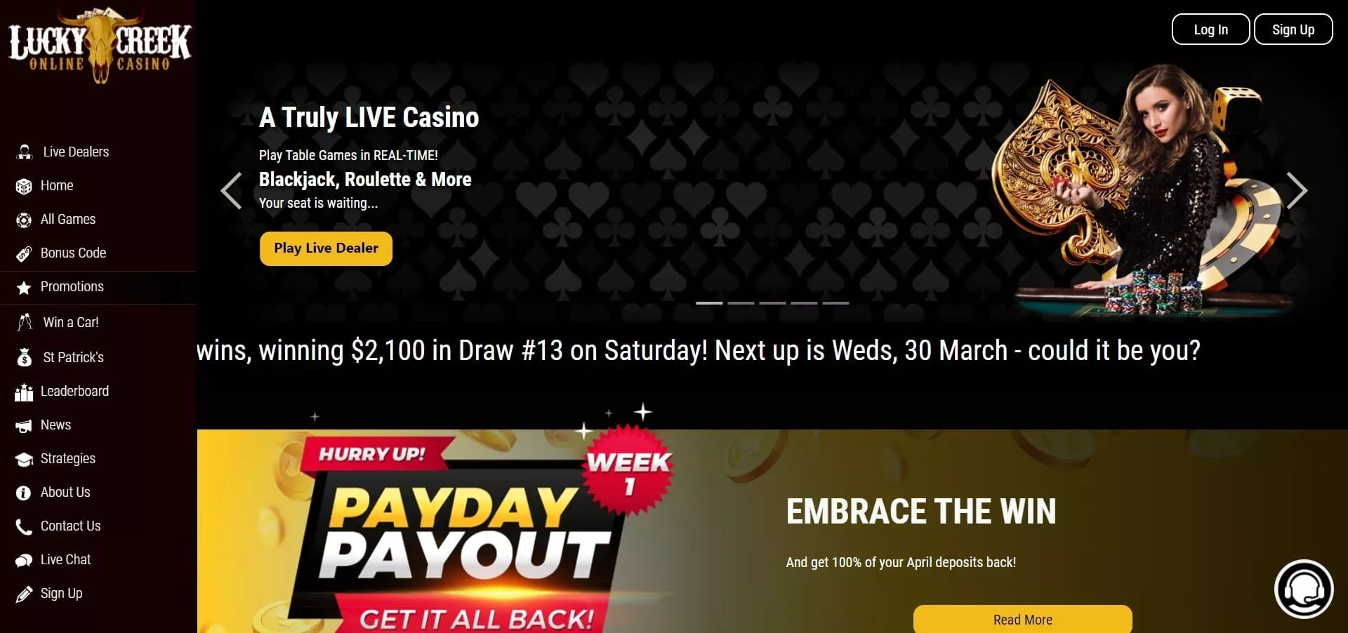 Note that Lucky Creek Casino slots form a significant part of this site, with immersive graphics and plenty of variety. With around 17 classic slots and 72 video slots, you are sure to find a slot title that suits your preferences.