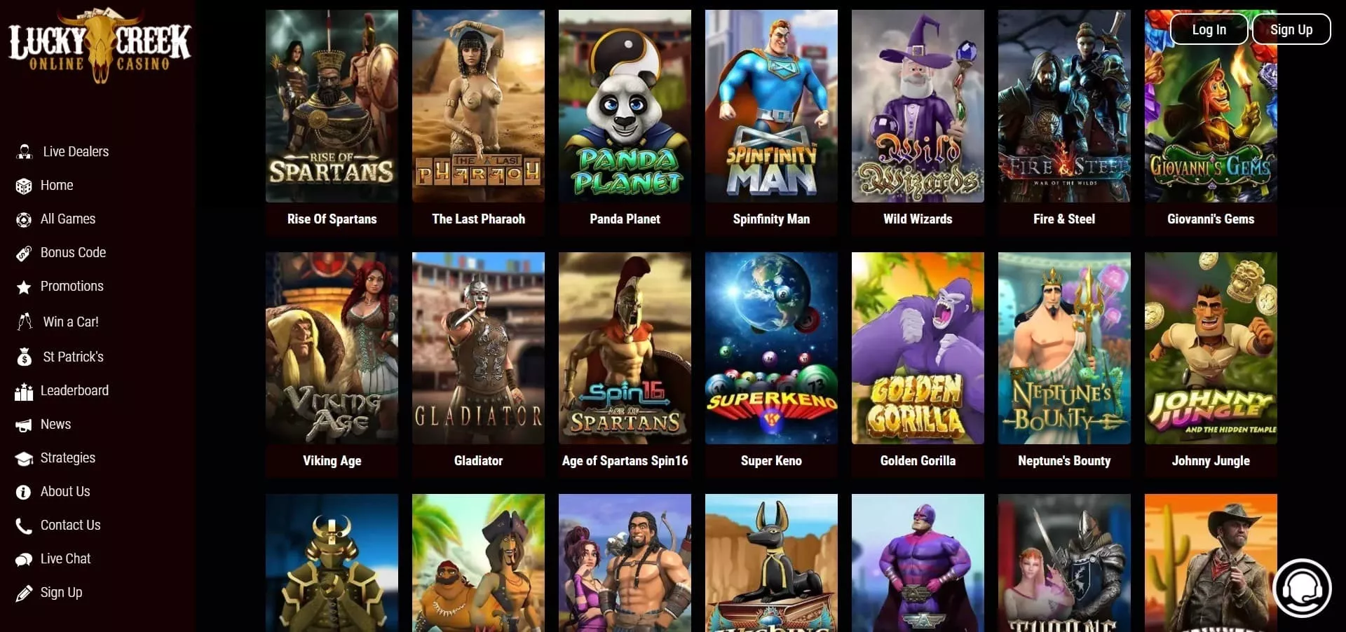 Lucky Creek is more than just an attractive face. Once you sign in and access its homepage, you will find that the choice of games is both useful and visually appealing. There is also a tutorial-style tour that tells new players how to choose their game and alter specific parameters, and after that, they are free to select from a bewildering array of options.