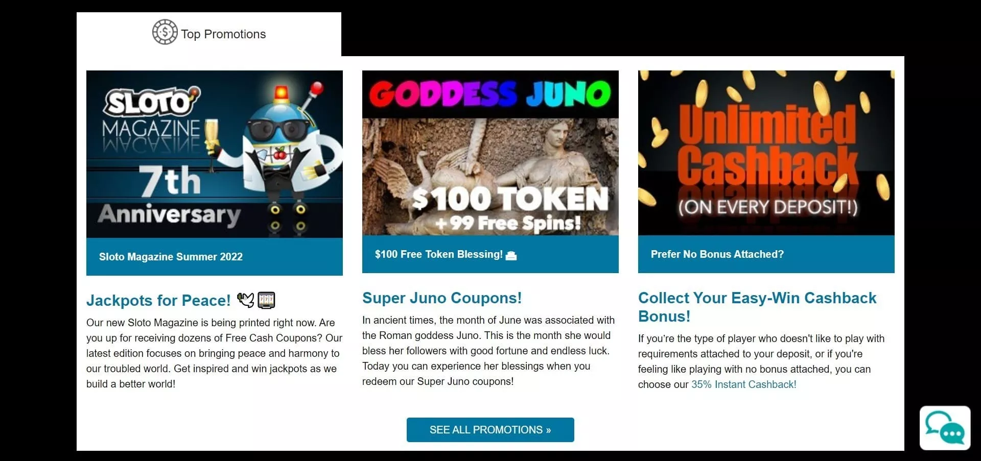 Slotocash online casino has two options when it comes to contacting their Customer Support. The first one is live chat, and another one is e-mail support. Slotocash casino login isn’t required for chatting with agents, anyone can get in touch with them.
