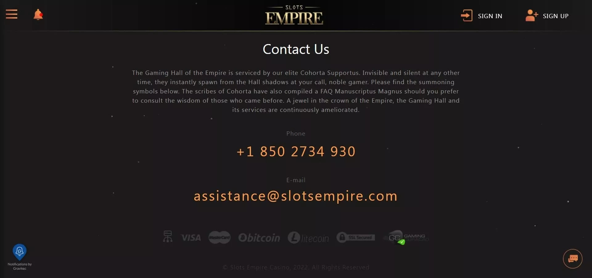 If your request isn’t urgent, you can drop an email to assisstance@slotsempire.com. Expect replies to take between 12 to 24 hours.
