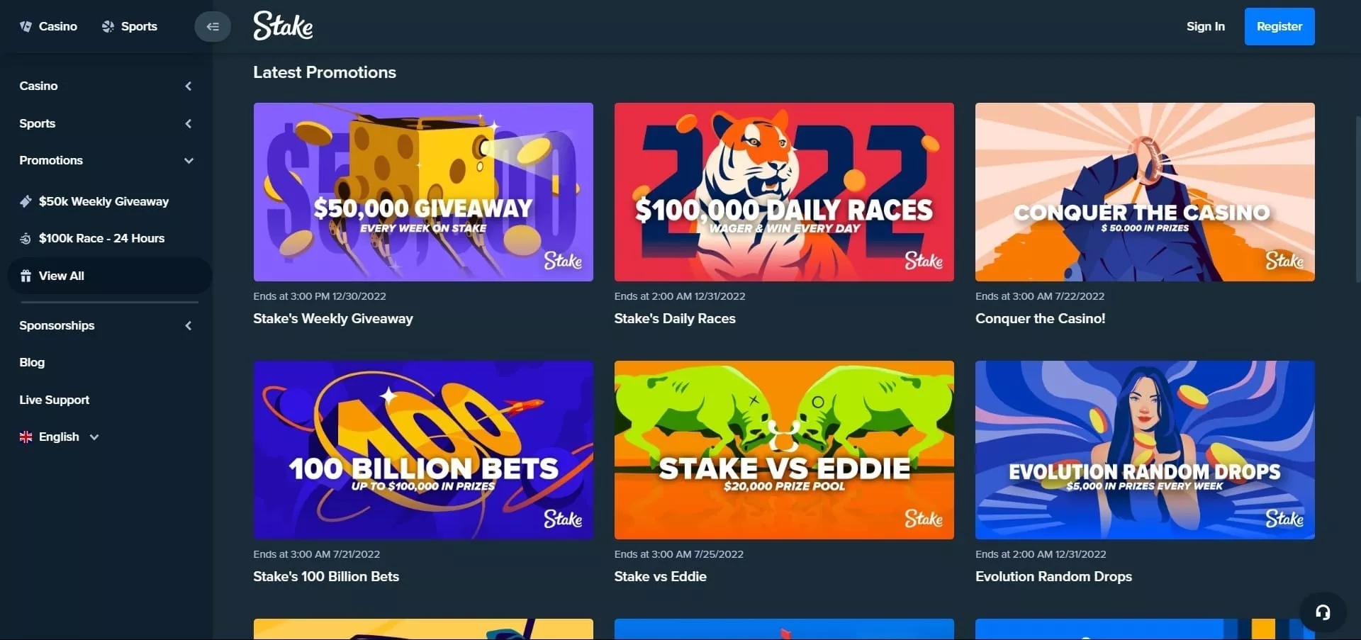 Unlike other operators that offer promotions with bonus codes, the Stake casino does not provide such an offer. Also, players won’t find a Stake casino no deposit bonus with Stake casino promo codes.