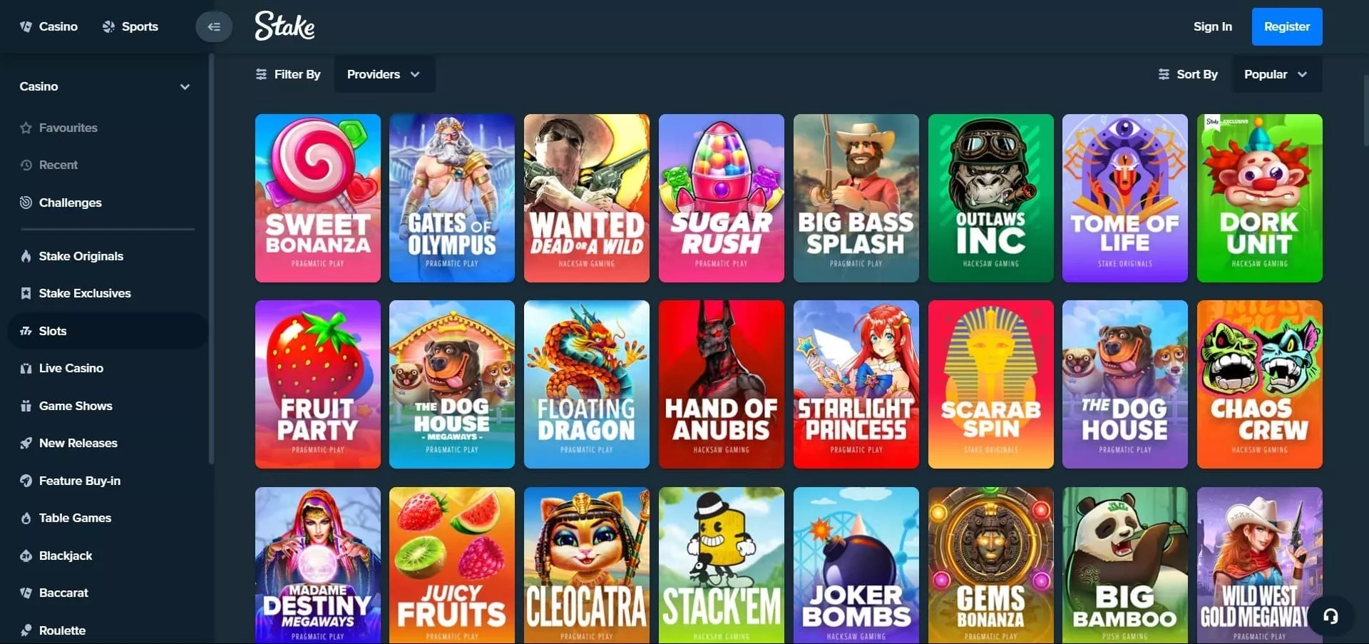 Stake casino online has a wide range of games from a variety of software providers. The gambling site includes over 30 software providers, and some of the most famous are: